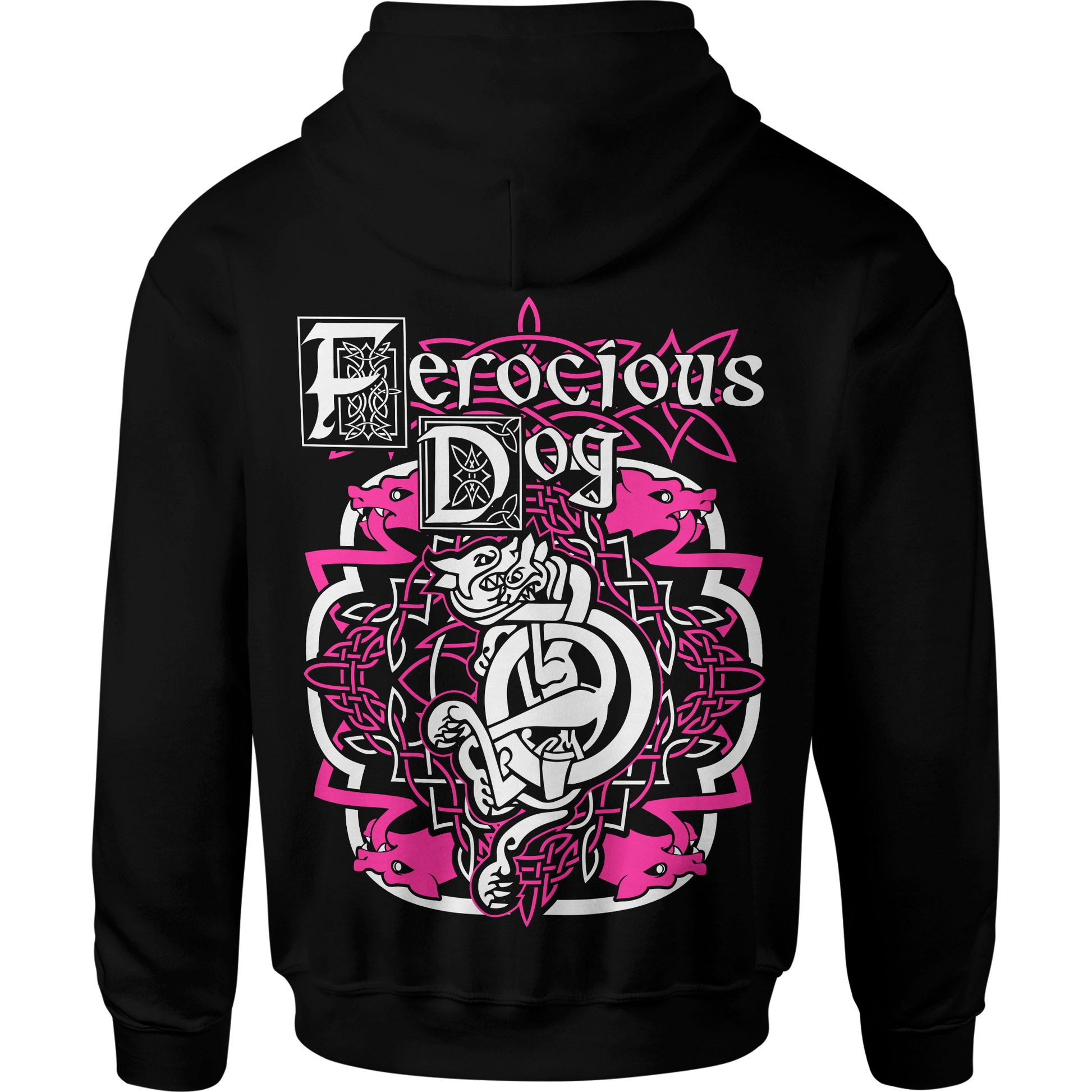 Inspired by the roots of Ferocious Dog, the Celtic Throwback Unisex Zip Up Hoodie combines elements of the original band logo with the iconic Cry of the Celt design. Featuring bold Pink and White Celtic knotwork surrounding a fierce hound, this Zip Up makes a powerful statement of heritage and rebellion.