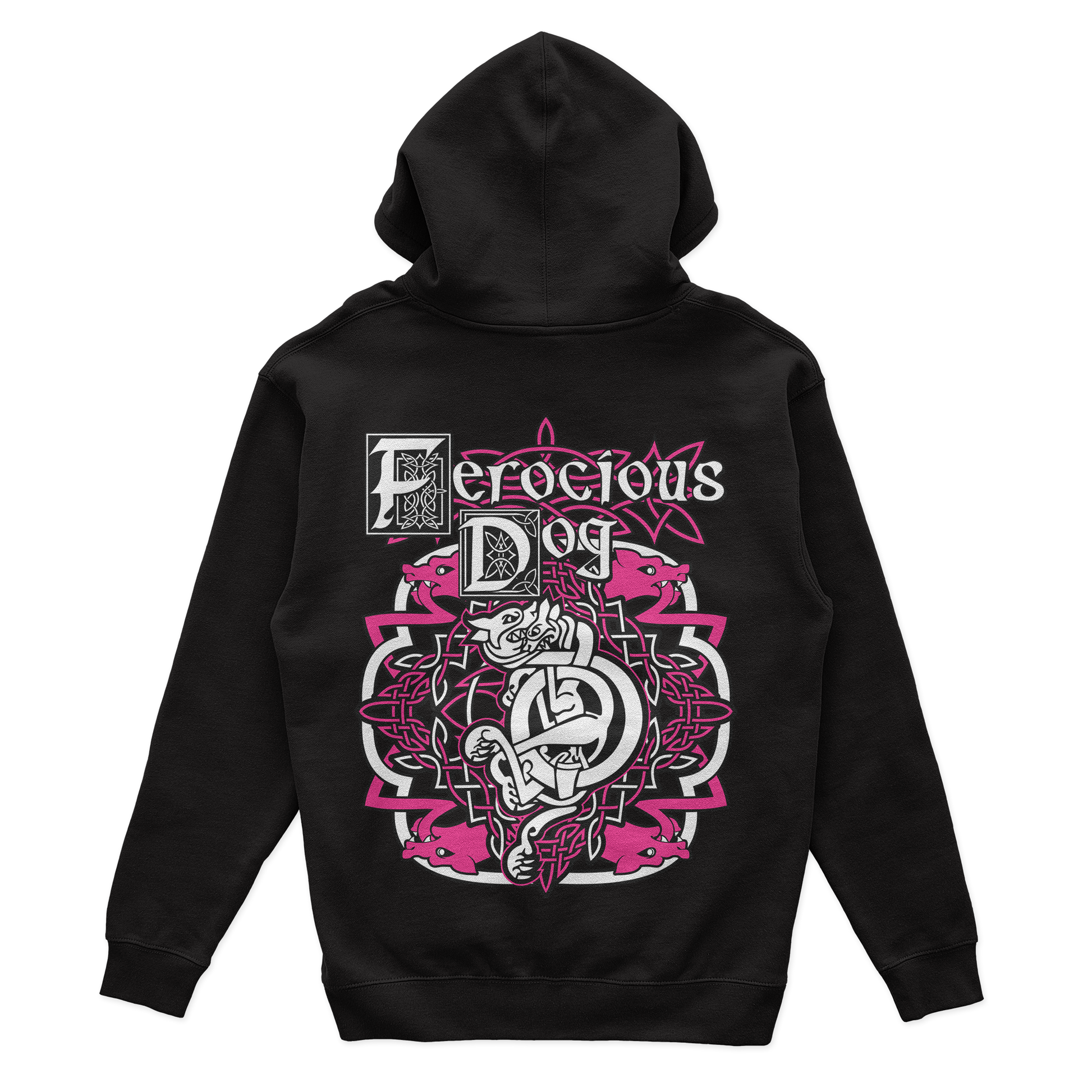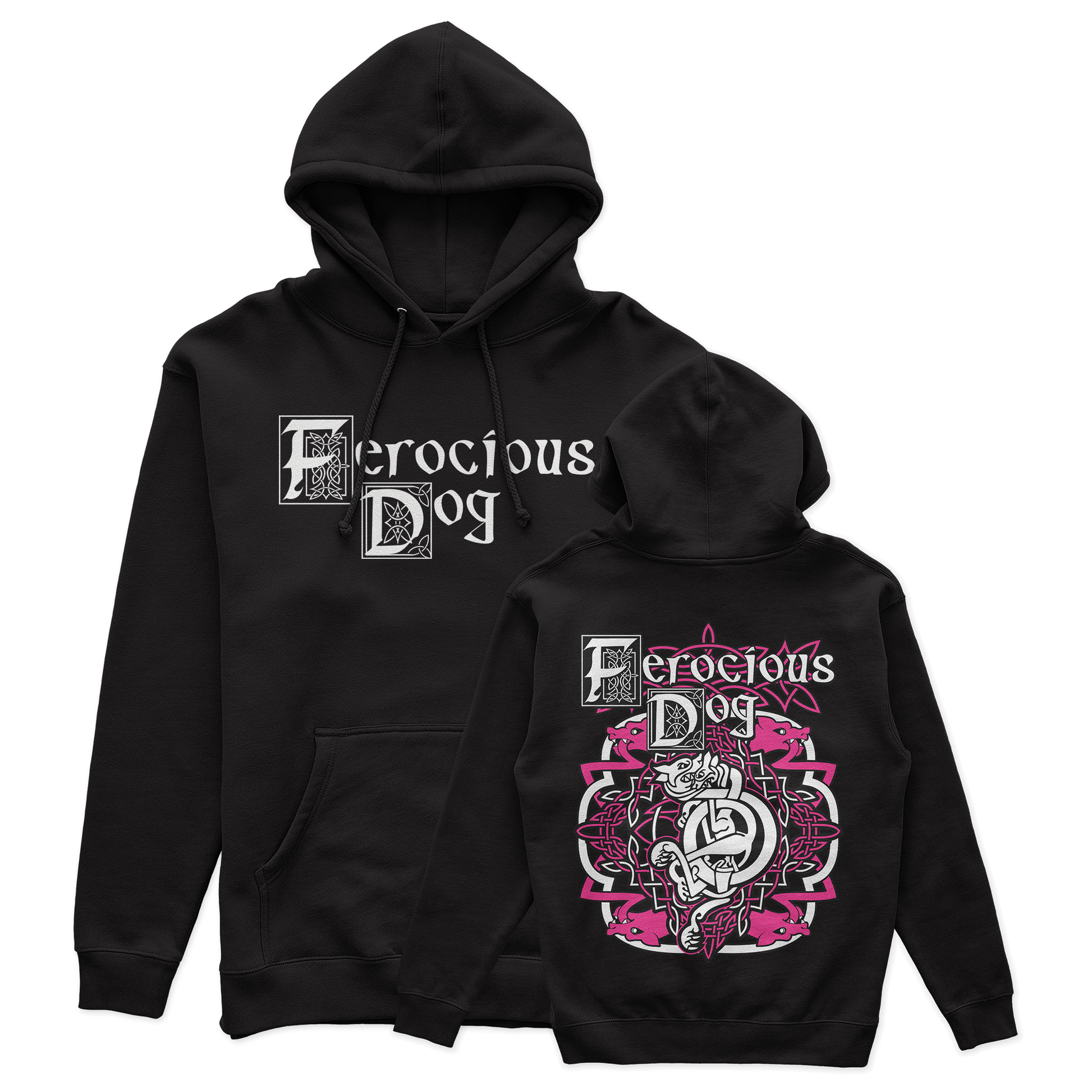 Inspired by the roots of Ferocious Dog, the Celtic Throwback Unisex Pullover Hoodie combines elements of the original band logo with the iconic Cry of the Celt design. Featuring bold Pink and White Celtic knotwork surrounding a fierce hound, this tee makes a powerful statement of heritage and rebellion.