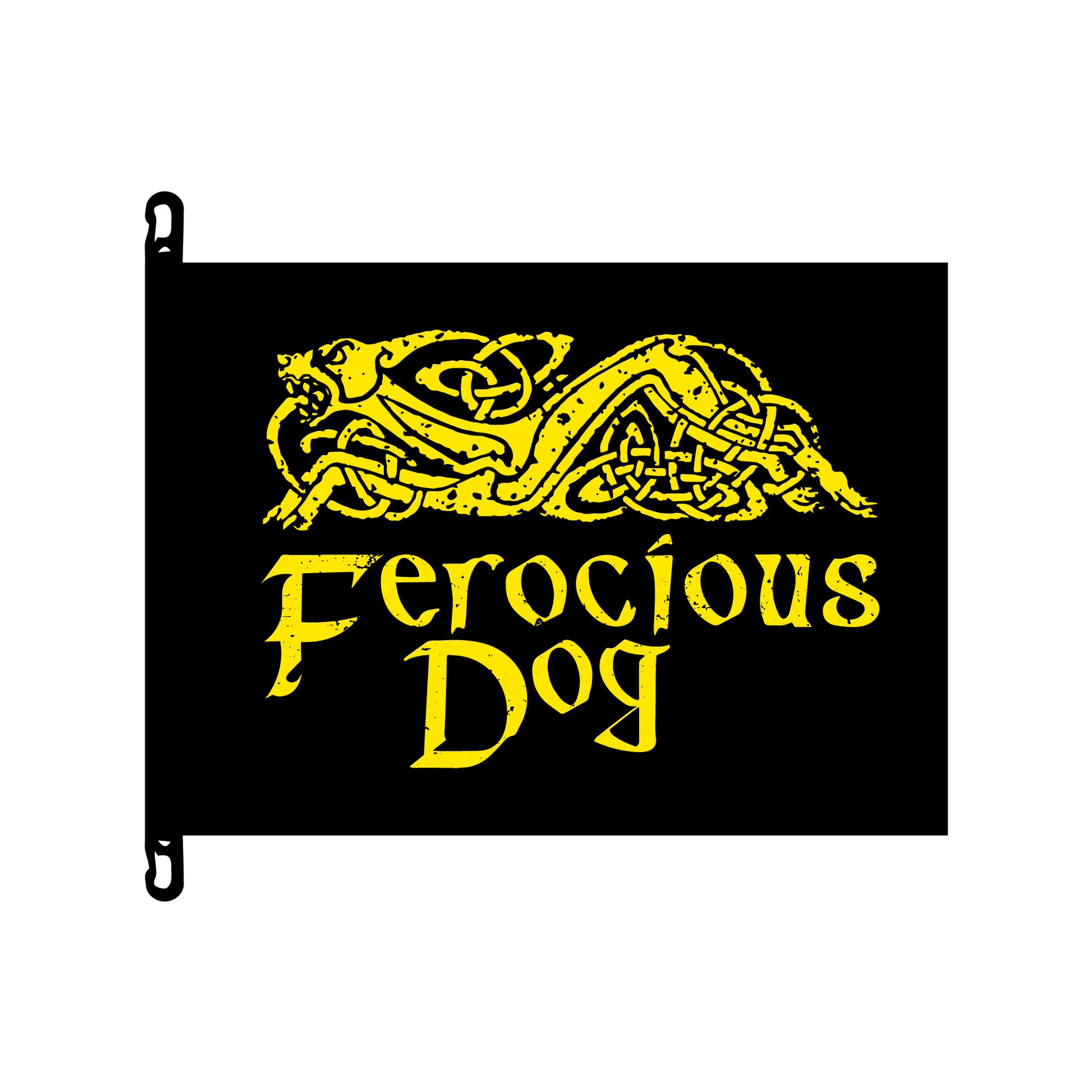 Make a bold statement with our latest Running Dog Flag, featuring vivid yellow print against a striking black background. Sized at 1000mm wide by 700mm deep, these flags are designed for impact. With two sturdy black clips for easy fastening to your flag poles, they’re perfect for festivals, gigs, or hanging proudly at home. Show your love for Ferocious Dog wherever you go!
